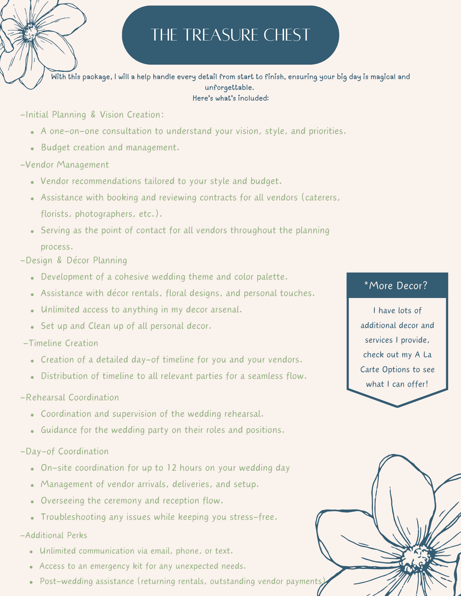 From timeline management to troubleshooting, I’m there every step of the way to make your event stress-free and memorable.